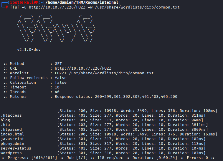 - Ensure that you modify your hosts file to reflect internal.thm