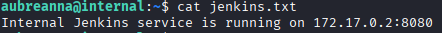 Toujours dans le dossier /home/aubreanna, je trouve le fichier jenkins.txt