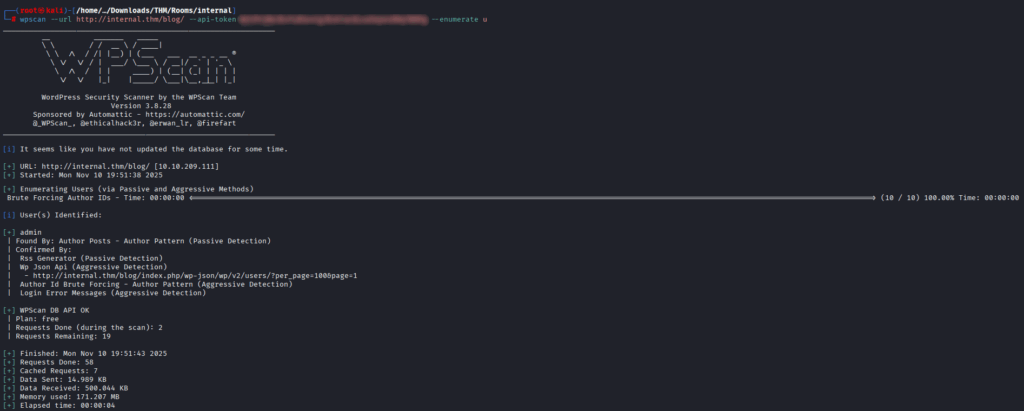 Un petit coup de WPScan pour continuer l’énumération.